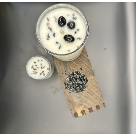 Bougie Parfumée Collection "La Minérale" Obsidienne Oeil Celeste pierre naturelle - 240g
